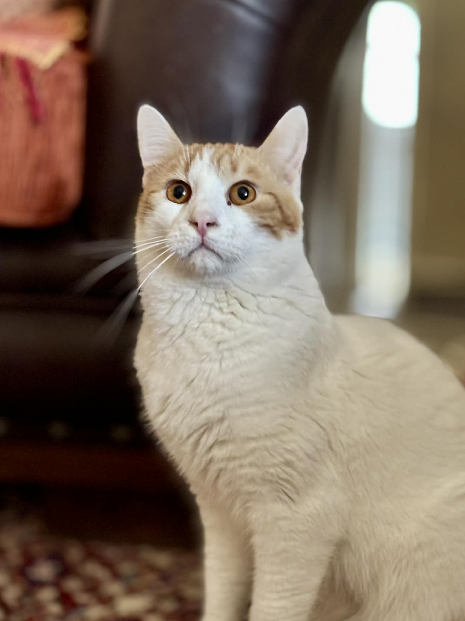 Andere Katzen ignoriert er meist, und wir glauben, dass er sich am wohlsten fühlen würde als Einzelkatze, wo er nicht um Platz oder Aufmerksamkeit konkurrieren muss und in seinem eigenen Tempo Vertrauen aufbauen kann.