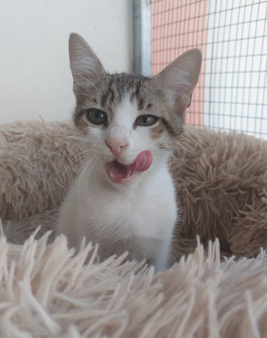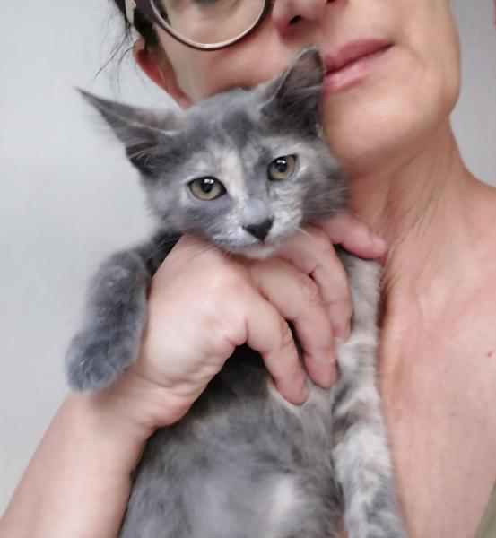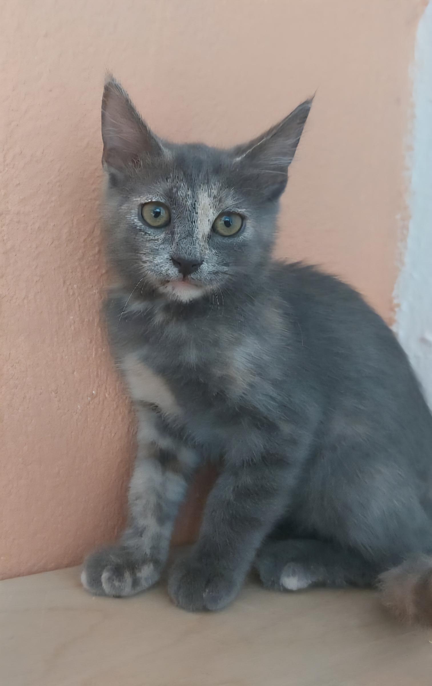 Melina wurde im Sommer mit einem gebrochenen Hinterbein in schlechtem Zustand in der Nähe des Hauses ihrer Retter ausgesetzt. Sie wurde zum Tierarzt gebracht, geröntgt, bekam Antibiotika und ist auf dem Weg der Besserung. Sie ist intelligent, wissbegierig und sehr verspielt und anhänglich.