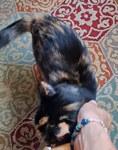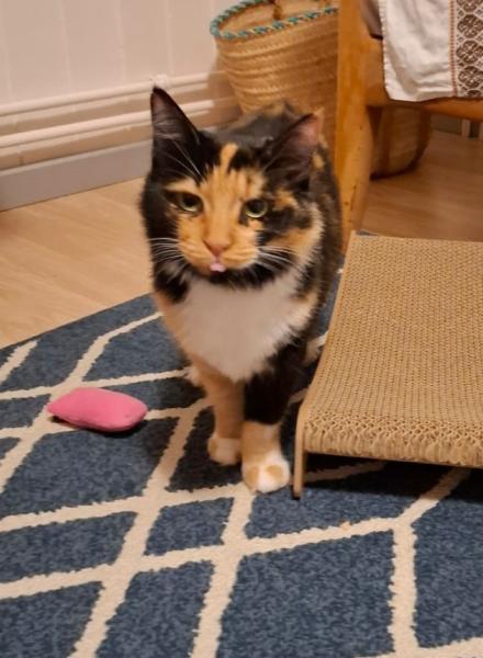 Die hübsche Melody mit dem schönen 3-färbigen halblangen Fell wurde im März mit 5 Kitten in einer Kleinstadt aufgefunden. Sie war eine liebevolle Katzenmutter und umsorgte ihre Kinder in der Pflegestelle. Diese haben mittlerweile alle ein Zuhause gefunden.