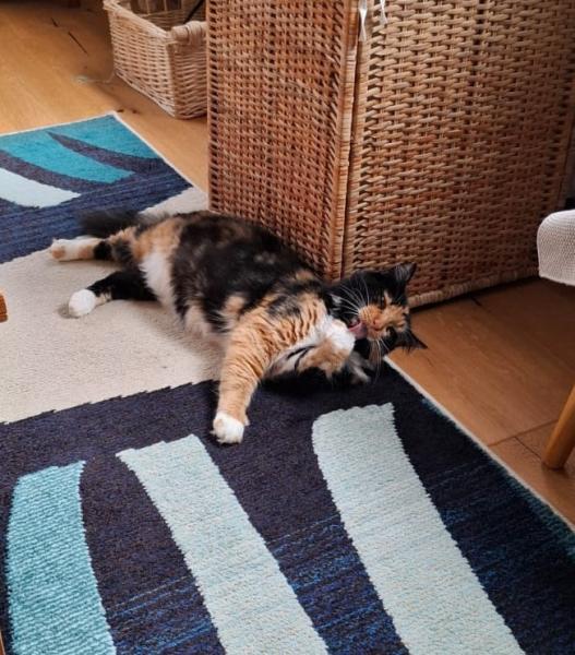 Gerne leistet sie Dir auch im Homeoffice Gesellschaft und liegt entspannt auf der Kratztonne am Fenster. Sie ist keine ausgesprochene Schmuserin. Doch mit Zeit und Geduld wächst das Vertrauen zu ihren Menschen. Dann geniesst sie kurze Streicheleinheiten und das abendliche Spielen mit der Katzenangel und Spielmäusen.