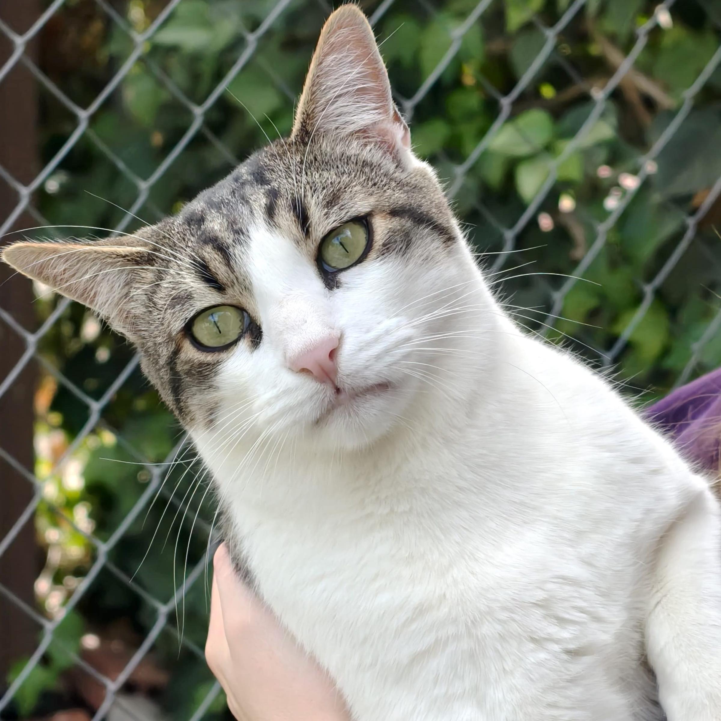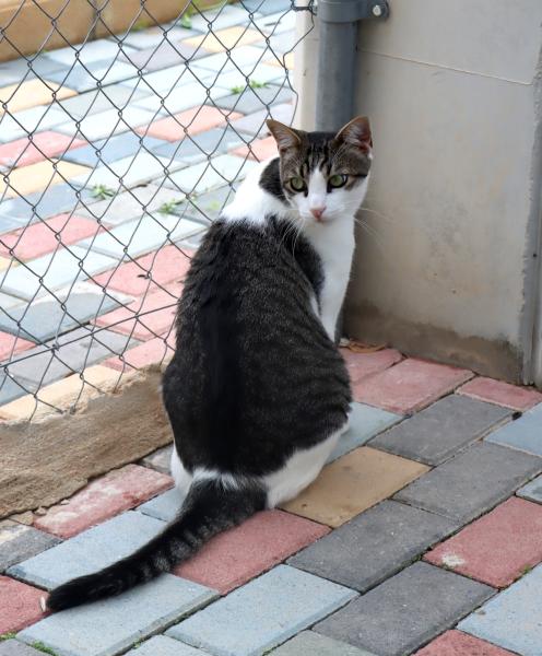 Seit er die Quarantäne verlassen konnte und ins grosse Katzengehege umgezogen ist, blüht er richtig auf. Er ist glücklich und versteht sich gut mit den anderen Katzen. Michi hat sich grossartig entwickelt. Er ist zu einem geselligen Kater geworden, der Streicheleinheiten sehr geniesst und sich gerne anfassen lässt. Betritt man das Katzengehege, kommt er einem sofort entgegen, um einen freudig zu begrüssen. Und wenn das Feuchtfutter serviert wird, klettert er vor lauter Vorfreude gerne auf die Pfleger.