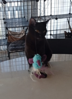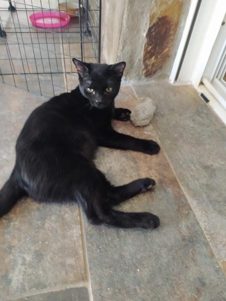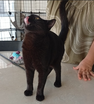 Im März brachte ein junger Mann fünf schwarze Kitten zu Rita in die Pflegestelle. Er hatte sie in einem Gebüsch gefunden. Sie waren dehydriert und wohl schon mehrere Tage ohne Nahrung. Eines der Kitten konnte nicht mehr gerettet werden. Die anderen vier wurden von Rita aufgepäppelt und haben sich zu tollen, eigenständigen Persönlichkeiten entwickelt. Ihr Bruder Max durfte schon in sein Für-Immer-Zuhause umziehen.