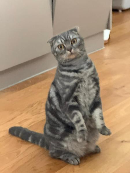 Aktuell scheint es Mila gut zu gehen, aber wir möchten transparent darauf hinweisen, dass Scottish Fold Katzen leider aufgrund ihrer Zuchtform massive gesundheitliche Probleme entwickeln können.