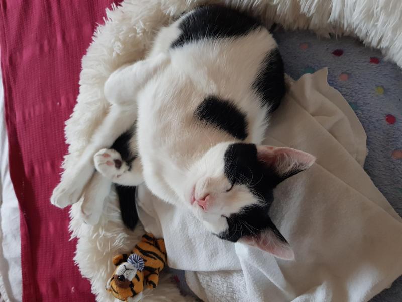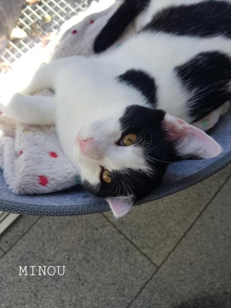 Minou (m), 5 Monate alt, Kater schwarz-weiss