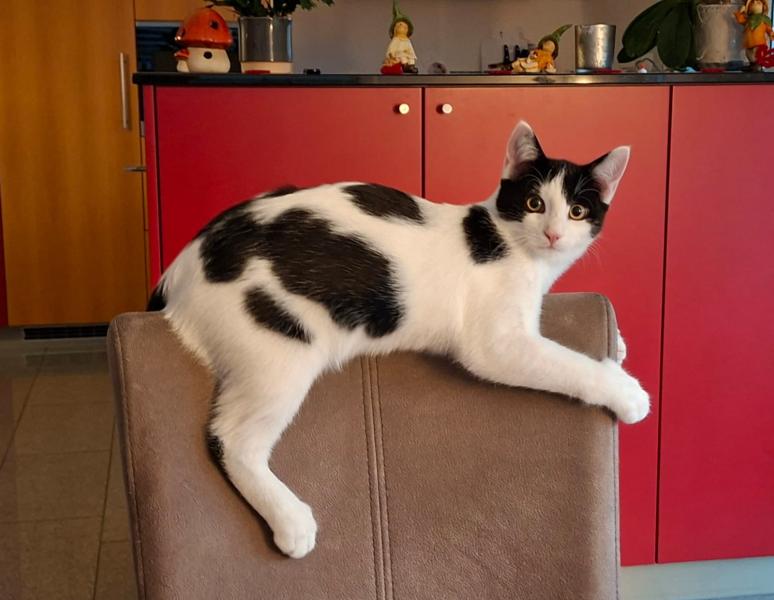Er braucht später Freigang ins Grüne via Katzentüre und wird nur zu zweit oder zu einem aktiven Gspändli bis 1 Jahr alt vermittelt.