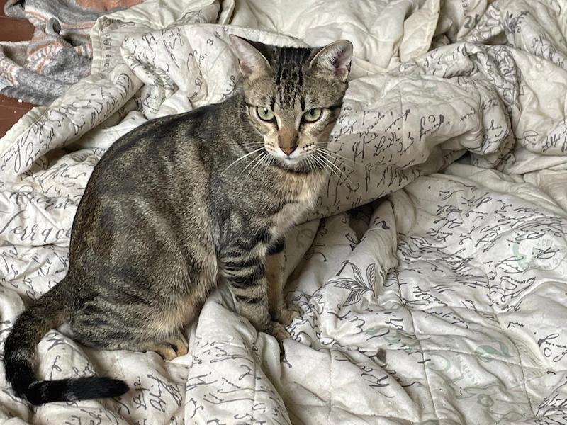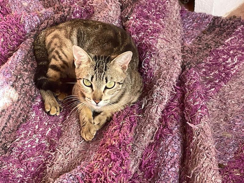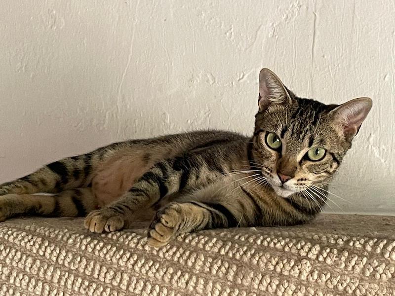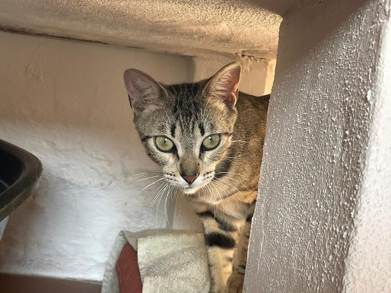 Die Spanierin Moe hat ihre Scheu vor dem Menschen nun hinter sich gelassen. Sie ist neugierig, verspielt und liebt Nassfutter über alles. Sie geniesst nun Streicheleinheiten, fällt aber ab und zu in ihr altes Muster zurück.