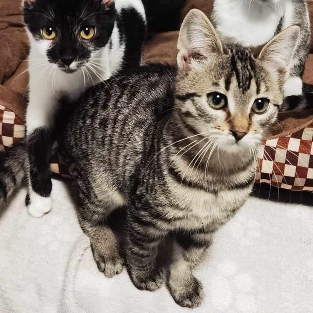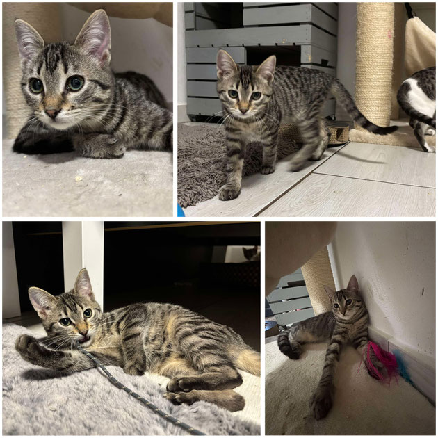 Der getigerte Katzenbub Molokai wurde mit seinen Geschwistern ausgesetzt auf einem Feld gefunden. Alle durften in die Auffangstation der Pfotenhilfe Mogli ziehen.