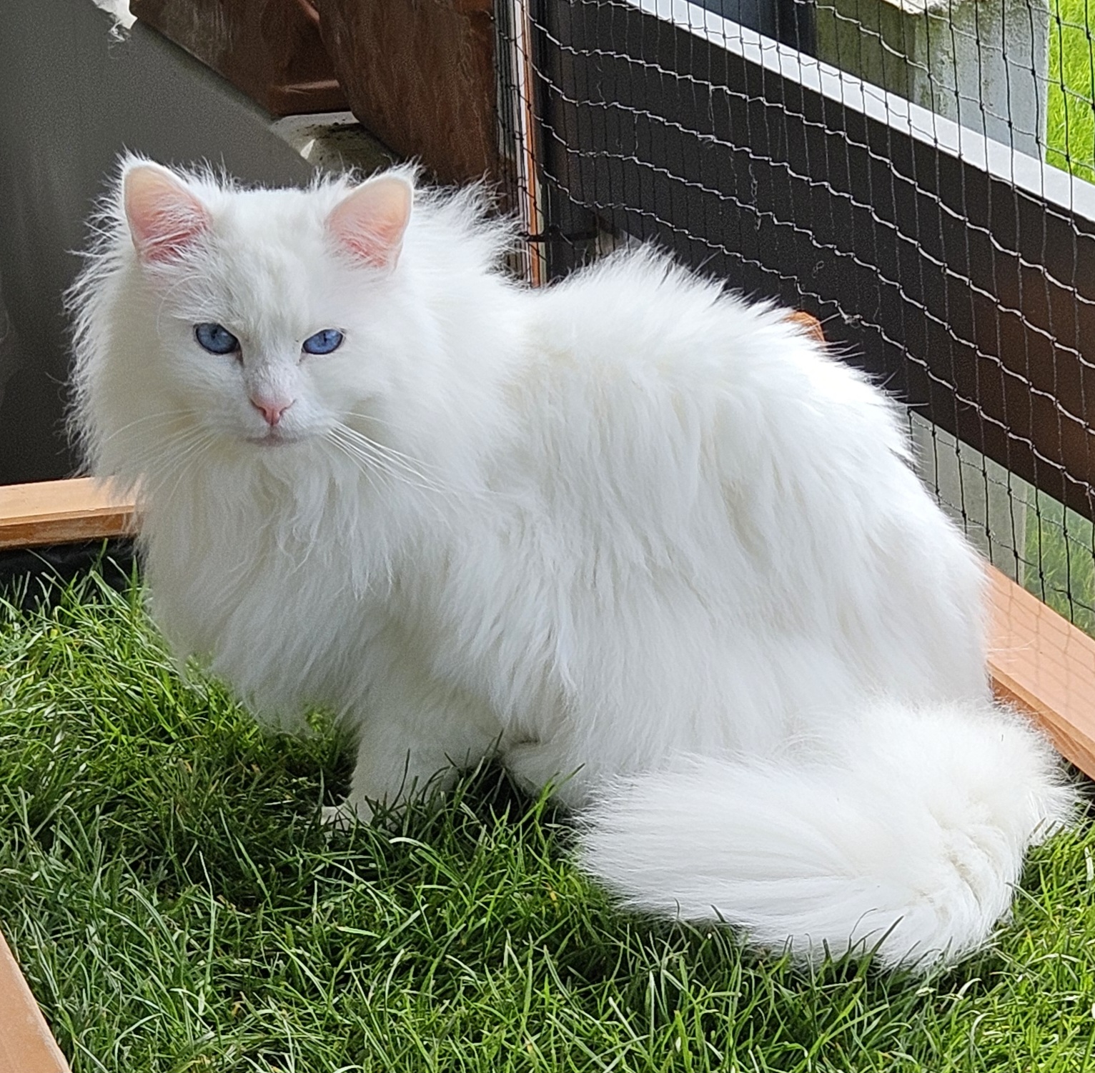 - Ein geschützter Garten oder gesicherter Balkon sind ein Muss, da er sehr gerne an der frischen Luft sitzt und die Welt beobachtet. Er ist ein Wohnungskater und nicht an Freigang gewöhnt.
