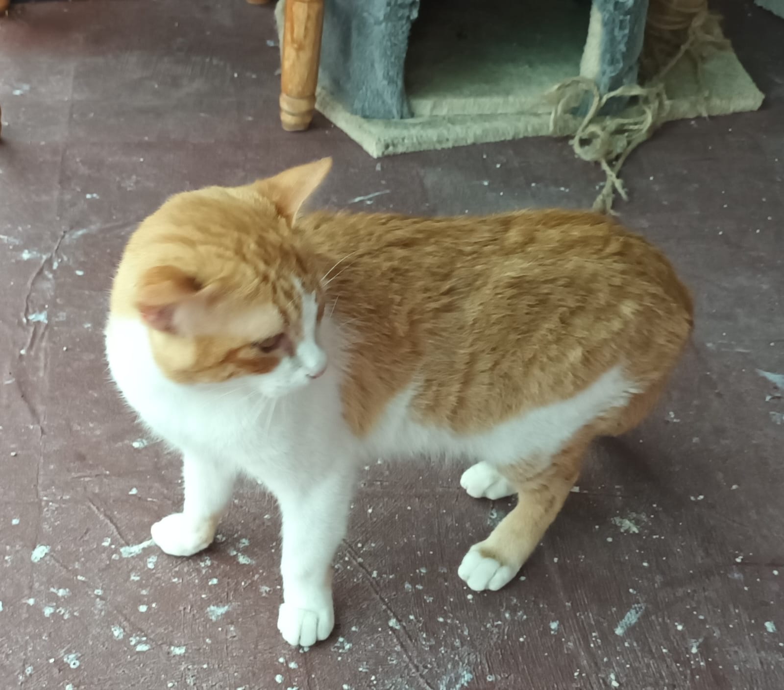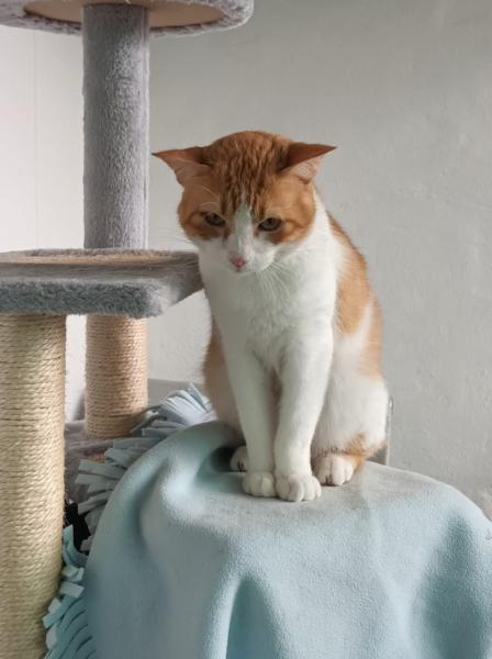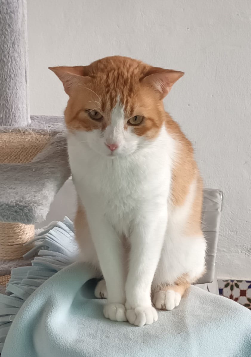 Ich bin ein schlanker, 5-jähriger (geb ca 11/2020) Kater, mit schönen goldigen Augen und feinem rot-weissen Fell. Ich wurde im Herbst 2025 auf der Strasse aufgegriffen und ins private Tierheim von Maria Gracia im Hinterland von Malaga überführt. Dort lebe ich nun mit anderen Artgenossen friedlich zusammen und warte darauf, dass mich eine neue Familie sieht und mich in ihr Herz schliesst.