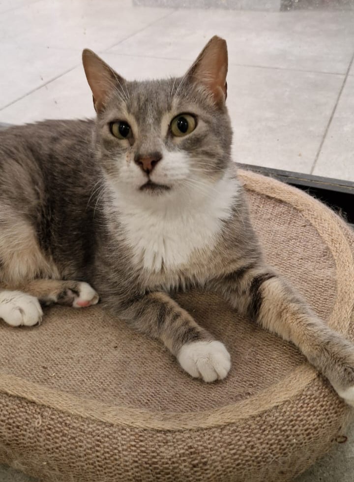 Er wurde in einem Hotel in einem Vorort von Athen in einem Katzenrudel geboren. Leider kümmert sich das Hotel nicht besonders um die Katzen. Nova hatte eine riesige Wunde am Bein und am Rücken, vermutlich von einem Hundebiss. Der Arme hatte auch eine Wunde hinter dem Ohr, die von Otodectes cynotis verursacht wurde.