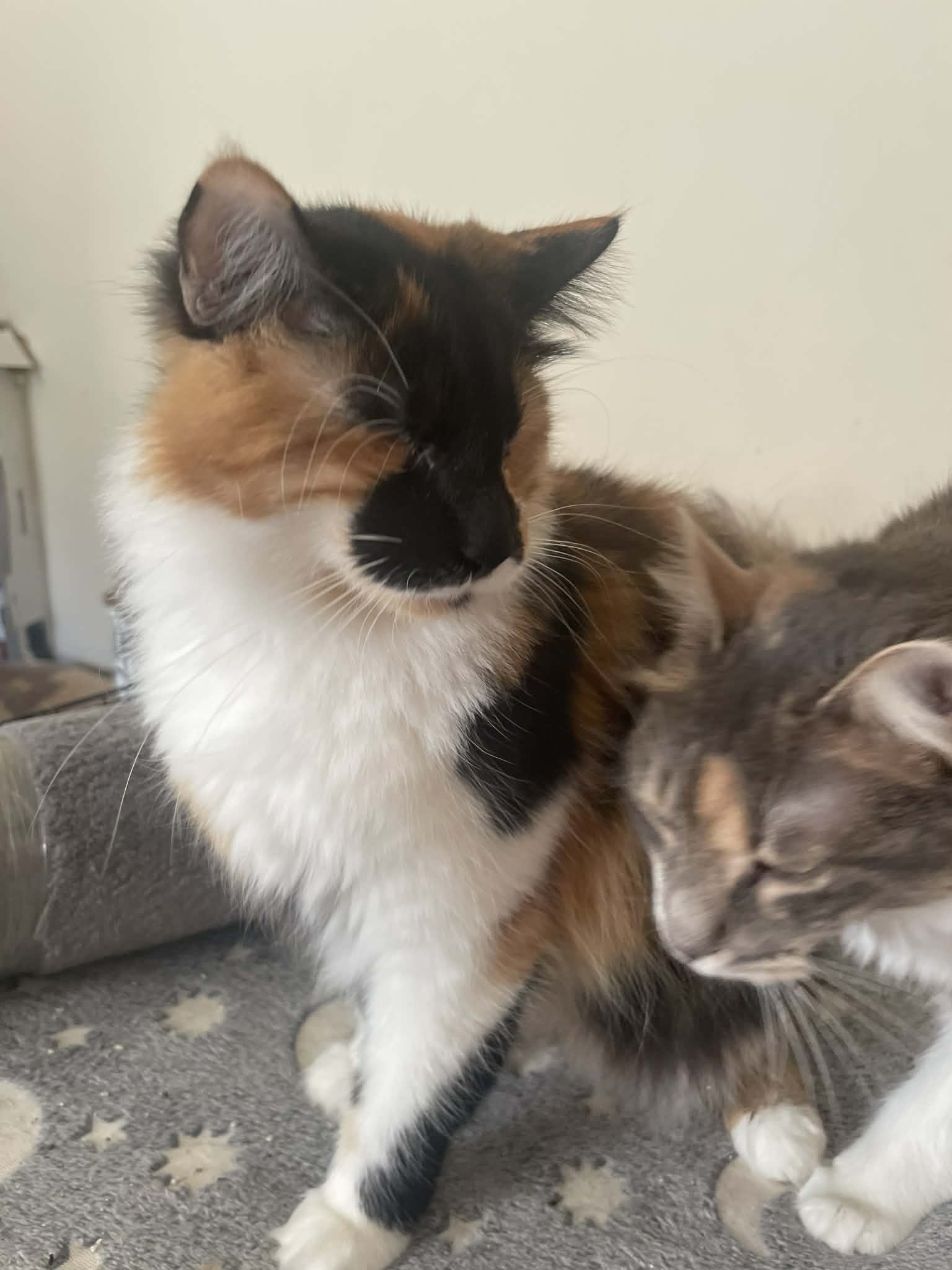 Leider waren die Nachbarn alles andere als freundlich und versuchten immer wieder, die Katzen zu vertreiben. Zum Glück nahm eine Tierschützerin Otto und Helia in ihre Pflegestelle auf. Trotz der beengten Verhältnisse erfahren sie dort Wärme, Geborgenheit und Liebe.