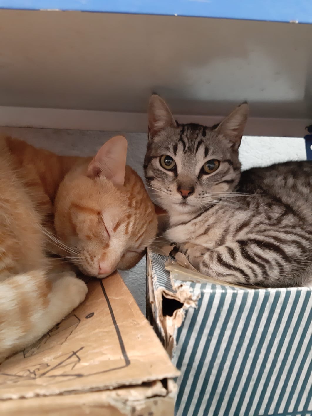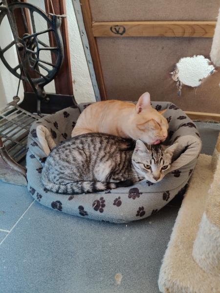 Dürfen wir euch das Katzenpaar Pilin (orange-getigert) und Fani (grau-getigert) vorstellen? Pilin gehörte einer Frau, welche sich aus gesundheitlichen Gründen nicht mehr um ihn kümmern konnte und deshalb bei einer Pflegestelle abgeben musste. Fani hat man in einer Katzenkolonie gefunden, wo sie sehr verängstigst wirkte. Die beiden leben seit Mitte Januar 2026 zusammen auf einer Pflegestelle, wo sie sich verliebt haben und deshalb unzertrennlich sind.