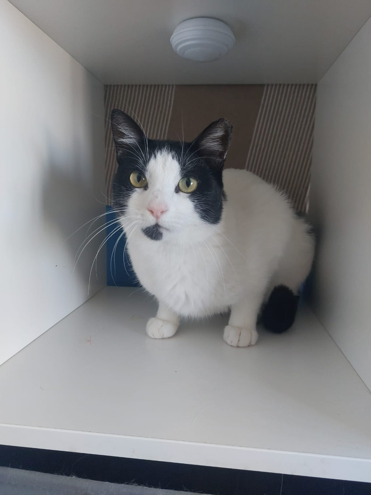 Sie ist ca. 3 Jahre alt, freundlich liebt es gestreichelt zu werden und begrüsst die Pflegerin lautstark.