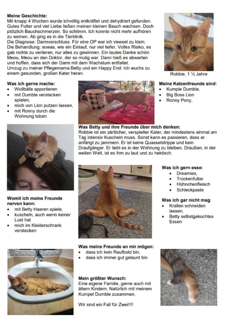 Die Beiden sind kastriert, geimpft, FIV/FeLV negativ, Tollwut negativ (und geimpft), gechipt und stubenrein. Die beiden sind Wohnungskatzen, für einen gesicherten Balkon wären sie aber dankbar.