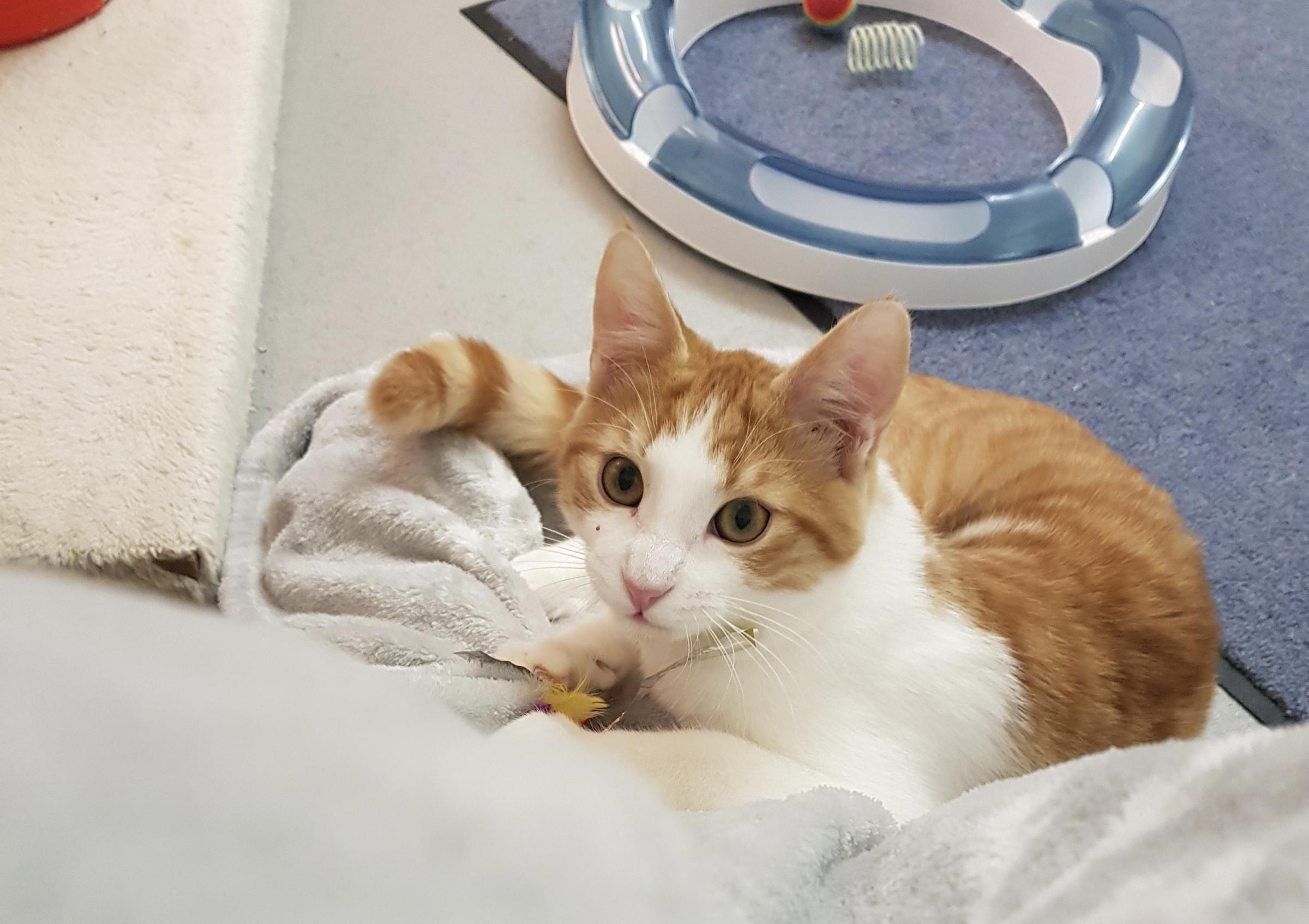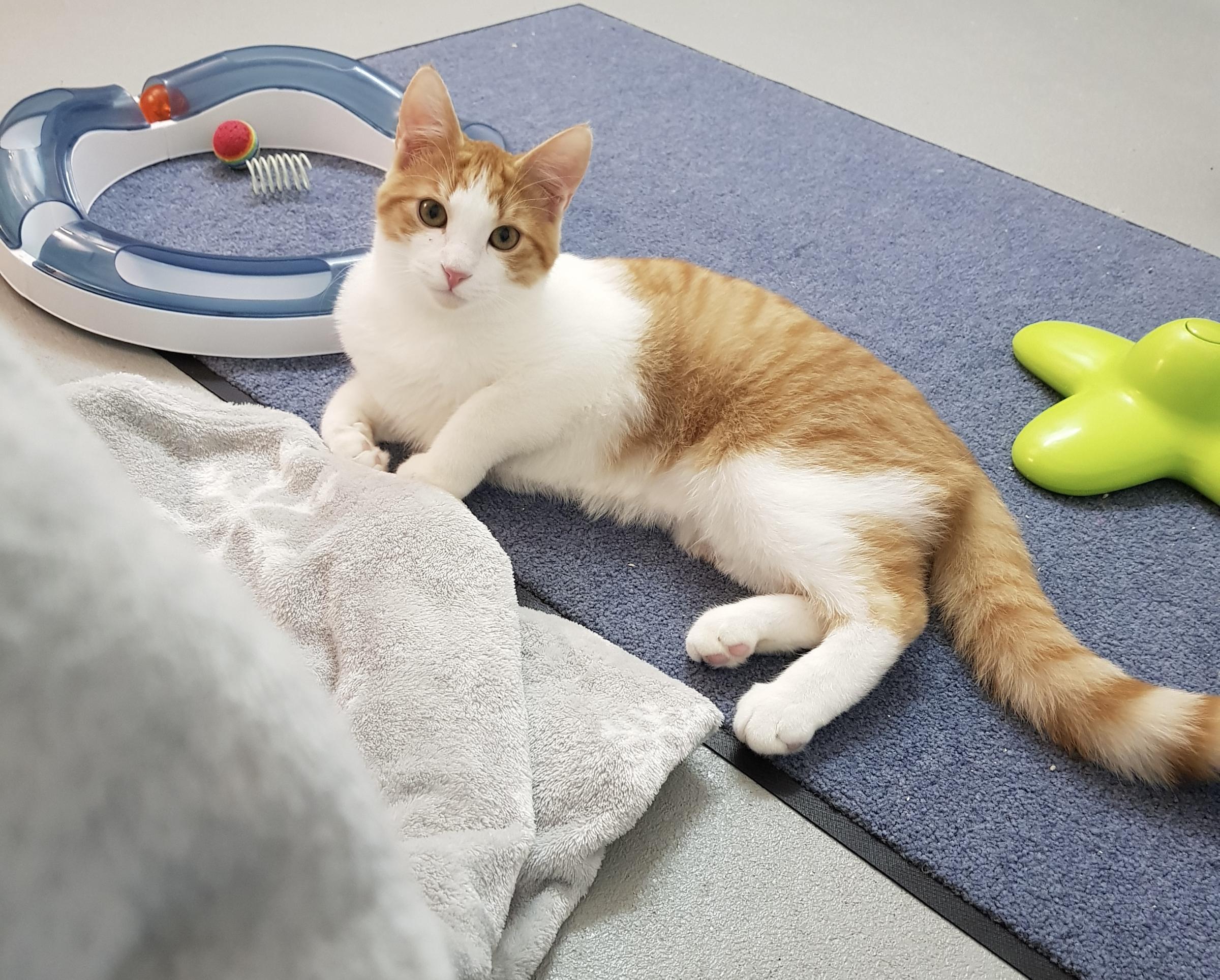 Der liebe Ruby ist wild auf einer Heubühne entdeckt worden. Mit seinen Geschwistern wurde er mit der Falle eingefangen und der Tierlihilfe zur Vermittlung übergeben.