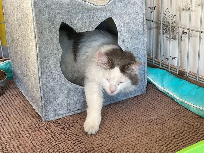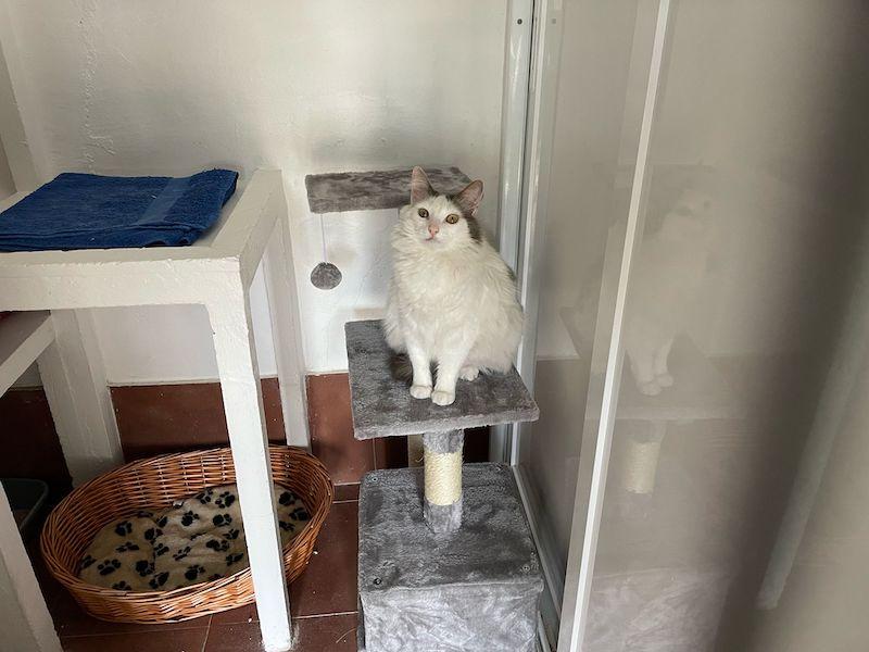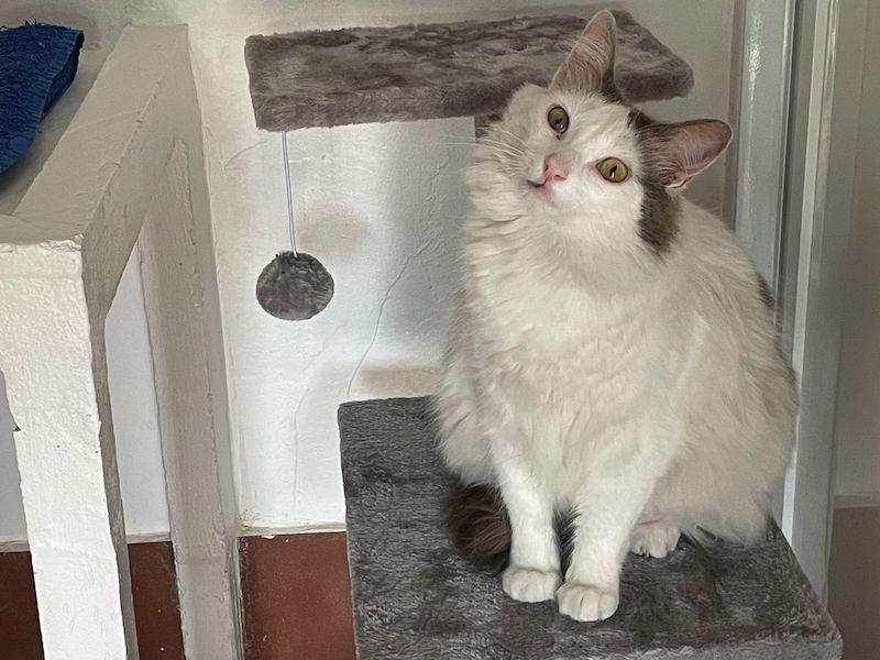 Das hübsche langhaarige weiss-graue Katerchen Salva lebte an einer gefährlichen Strasse mit viel Verkehr und hätte jederzeit überfahren werden können. Tierschützer brachten ihn dann in die Auffangstation.