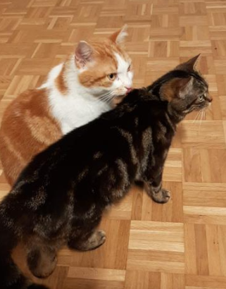Die 6j. Sirin&Gargamel sind vor knapp einem Jahr in ein tolles Zuhause zu einem Erstkater gezügelt, endlich ein Spielkamerad. Das findet der Erstkater jedoch immer noch nicht lustig und traut sich inzwischen nicht mehr nach Hause, zu dominant ist insbesondere Sirin. Aus diesem Grund sucht der Besitzer jetzt ein eigenes Zuhause für die beiden, nur die zwei allein mit ihren Menschen. Sirin&Gargamel sind kastriert, geimpft, gechippt und gesund (Gargamel bekommt vorbeugend Urinary-Futter, nachdem ihm Blasensteine entfernt werden mussten, ist aber alles problemlos verheilt). Sie sind stubenrein, gut erzogen, sehr anhänglich, verschmust und verspielt. Sirin ist eher dominant und neugierig, Gargamel anfangs noch sehr schüchtern, er taut aber auf, braucht einfach seine Zeit zum Ankommen. Sie lieben ihren Freigang in verkehrsarmer Umgebung, gern auch am Ortsrand oder ländlich, durchs Törli, so dass sie nach Herzenslust rein- und rauskönnen. Für die zwei suchen wir liebe Menschen mit viel Zeit zum Kuscheln und Spielen, gern auch eine Familie mit grösseren Kindern (ab ca. 12j.) und definitiv ohne andere Haustiere. Einfach Menschen, bei denen sie im Mittelpunkt stehen dürfen, ohne jegliche tierische Konkurrenz im Haushalt (die sie in die Flucht schlagen müssten). Sirin&Gargamel sind in Rudolfstetten/AG zuhause.