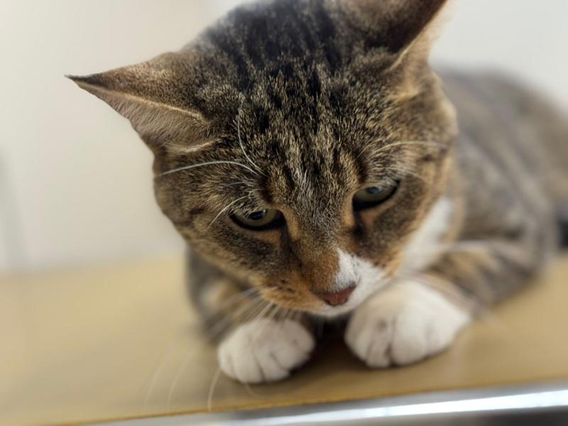 Sissy (01.04.22) ist eine sehr anhängliche und kuschelbedürftige Katze, die gerne ihre Zuneigung zeigt - manchmal auch mit kleinen Liebesbissen.