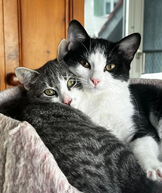 Stormy (w) und Zanelo (m) sind 2 Schätzis und suchen gemeinsam ihr für-immer-Zuhause. Sie sind im Mai 2025 geboren, 2x entwurmt, FeLV negativ getestet, 2x Katzenschnupfen/-seuche und Leukose geimpft sowie gechippt. Zanelo ist bereits kastriert.