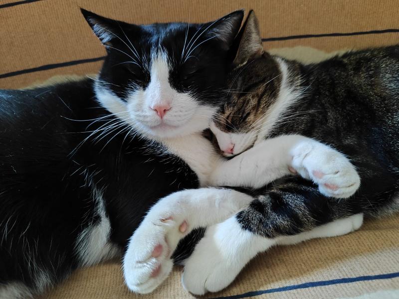 Bilder sagen mehr als tausend Worte. Diese Aussage trifft auch auf Teo (schwarz-weiss) und Benito (getigert, weiss) zu. Die beiden Brüder sind sich sehr zugetan und seit ihrer Geburt unzertrennlich.
