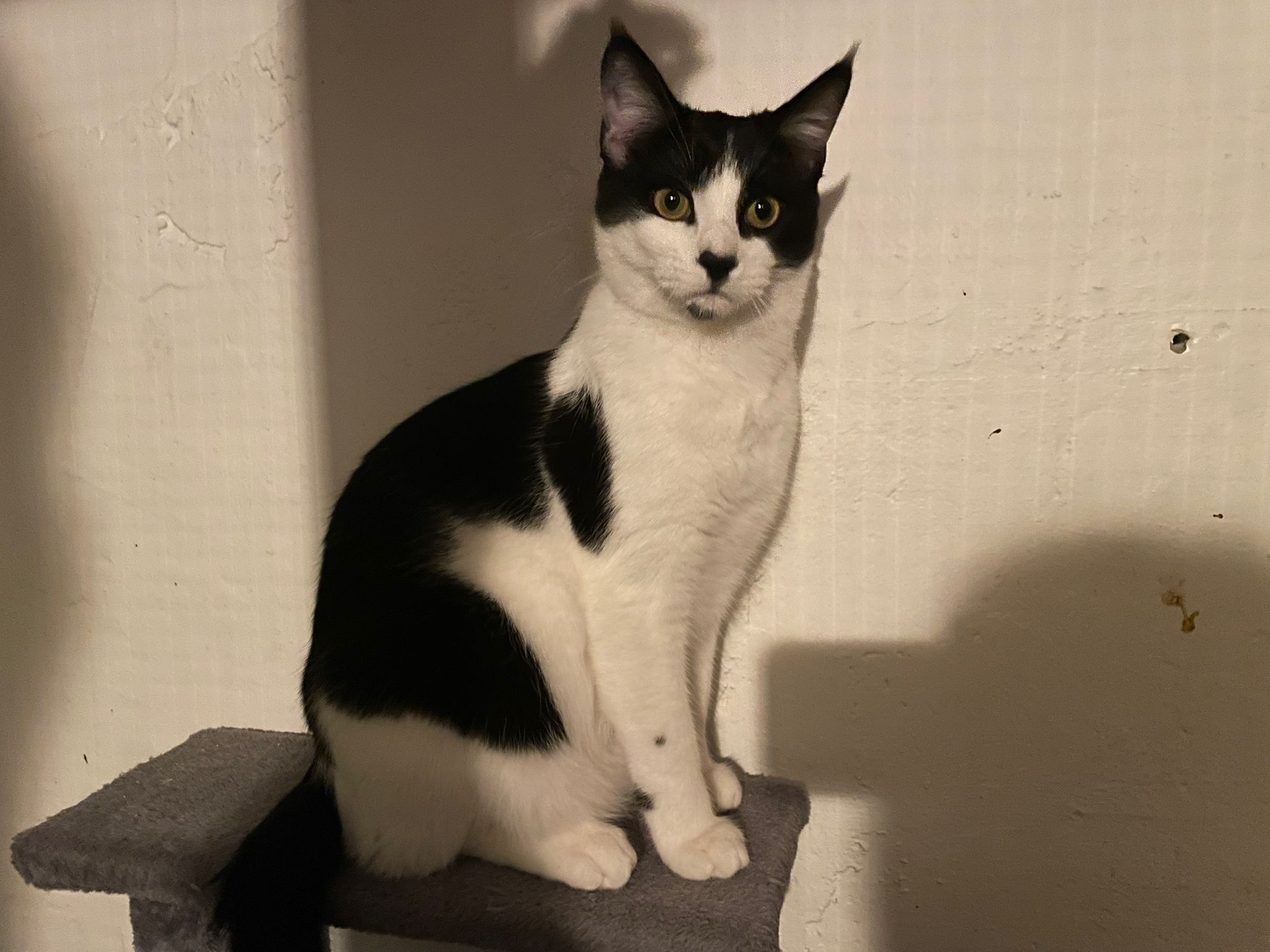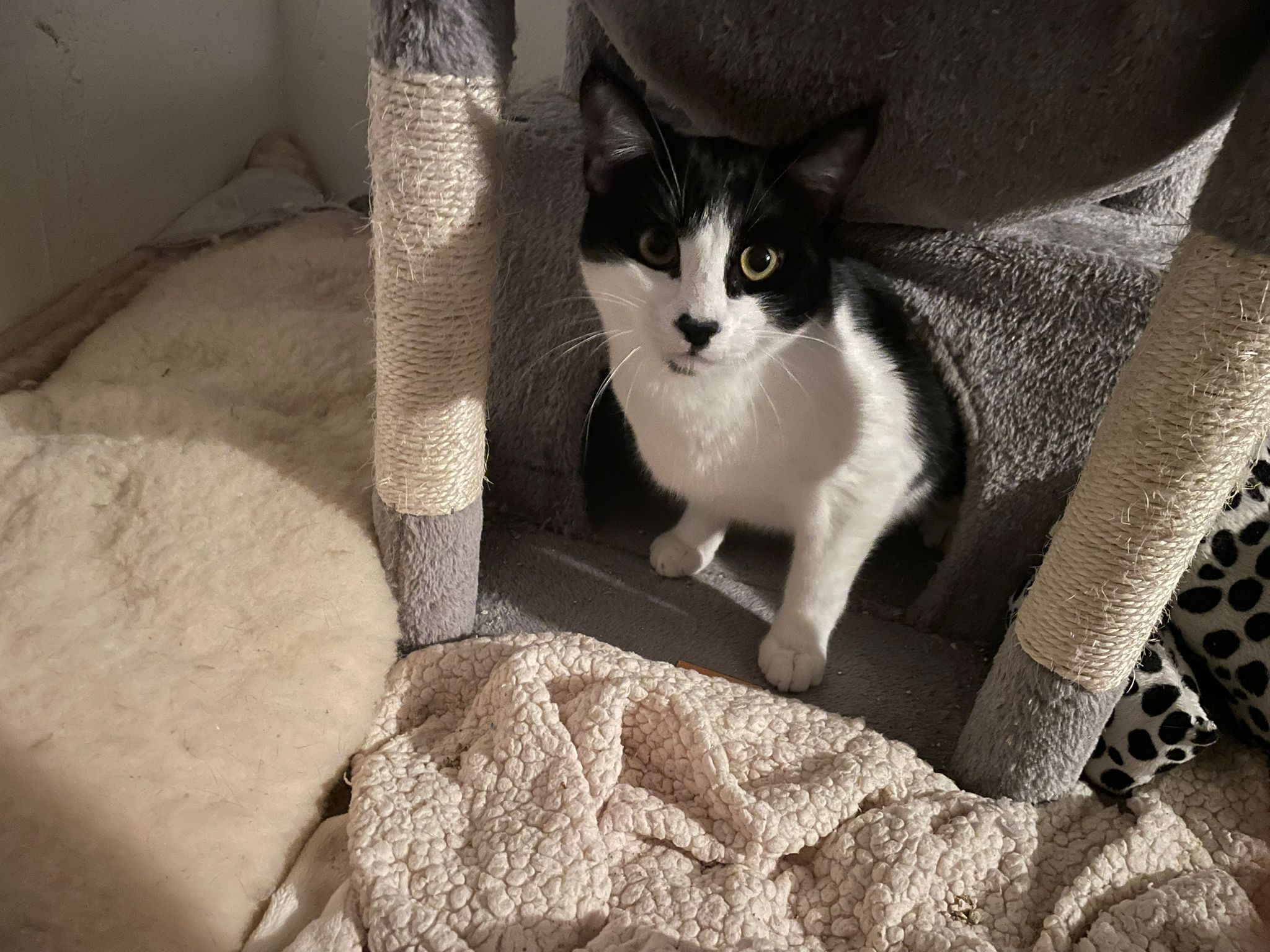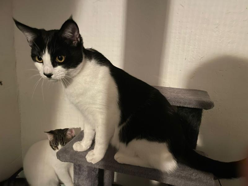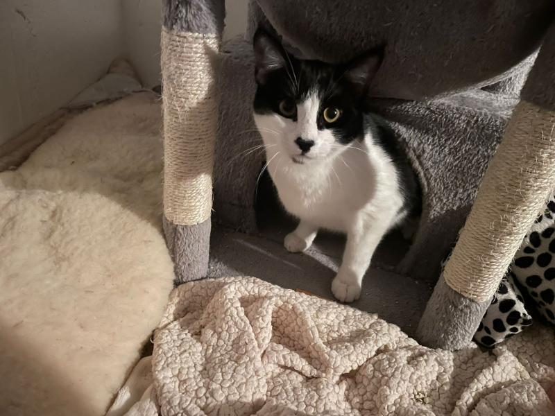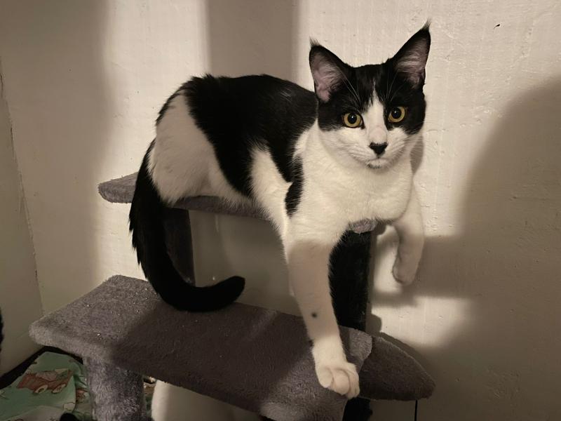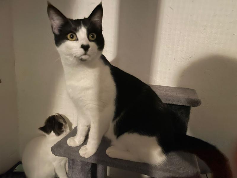 Das schwarz-weisse Katzenkind Timmy wurde mit der Mama und den beiden Geschwisterchen in einer Katzenkolonie gefunden und mit der Falle eingefangen. Nach dem Tierarztbesuch durfte die ganze Familie in die Auffangstation ziehen.