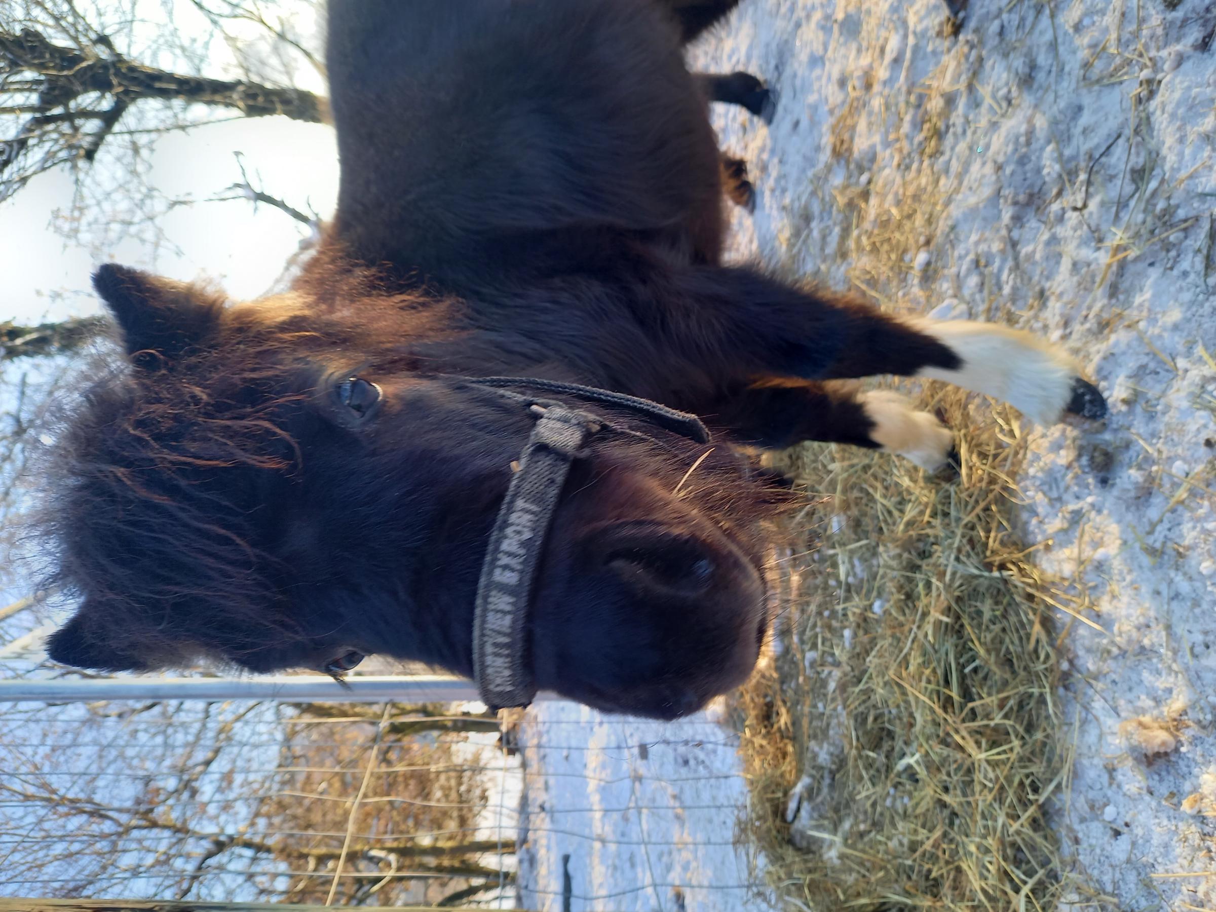 Onyx ist an Freilauf- und Gruppenhaltung gewohnt mit anderen Ponys und Kleinpferden.