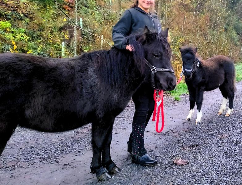 Unser schönes und liebes Hengstfohlen "Onyx" (geboren Frühling 2025) sucht ein schönes Zuhause. Sein Vater ist ein reines American Shetland Pony und seine Mutter ein American Miniature Horse, also wird er sicher etwas grösser als seine Mutter, Stockmass schätzungsweise zwischen 100-120cm, Fellfarbe: Schwarz-weiss Schecke, guter Charakter, gewohnt an Kinder, kennt bereits das Halfter & Führen im Gelände und Hufe geben, ist bereits mehrmals in den Hänger gestiegen, gechippt, geimpft, entwurmt, robustes & gesundes Pony, geeignet zum Kinderreiten, Trabrennen oder Freizeit.