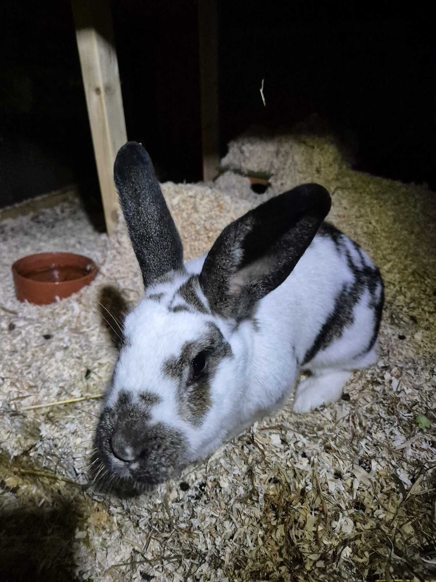 Mathilda (weiss/braun), Jahrgang 2021, ist eine ruhige und neugierige Dame. Sie kommt von sich aus «hallo» sagen und reagiert zuverlässig auf einen Pfiff – selbst wenn sie im Garten unterwegs ist, kehrt sie nach kurzer Zeit wieder ins Gehege zurück.