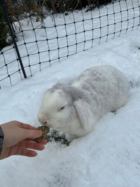 Die Zwergkaninchen Stärndli und Fläckli haben ein ruhiges, zutrauliches Wesen. Sie sind neugierig, sanftmütig und dem Menschen gegenüber offen. Sie sind 5 Jahre alt.