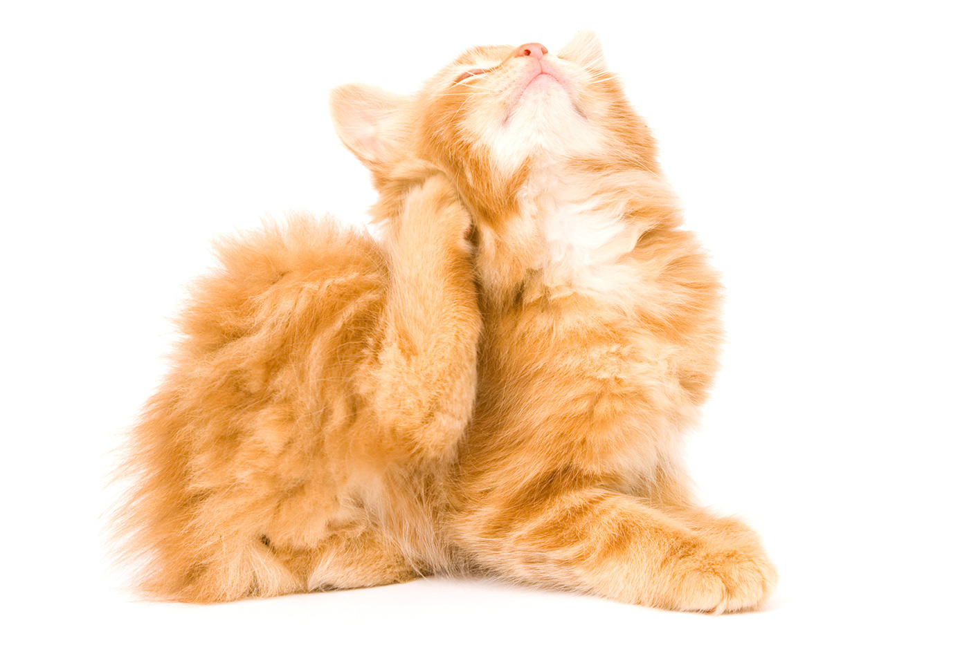 Bei der Katze sind multiple juckende, gerötete Knötchen vorhanden. Sie weisen eine ähnliche Verteilung wie beim Hund auf, kommen aber zusätzlich auch in der Nackengegend vor. Sekundäre Entzündungen sind weit weniger häufig als beim Hund.