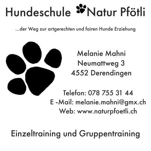 Alle Infos zu der Hundeschule Natur Pfötli sind auf meiner Homepage ersichtlich.